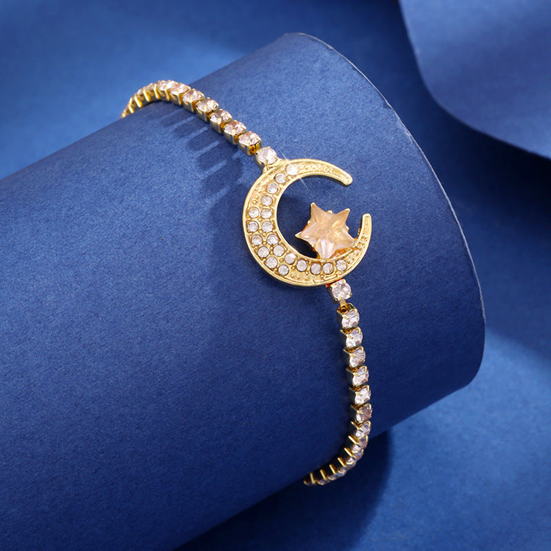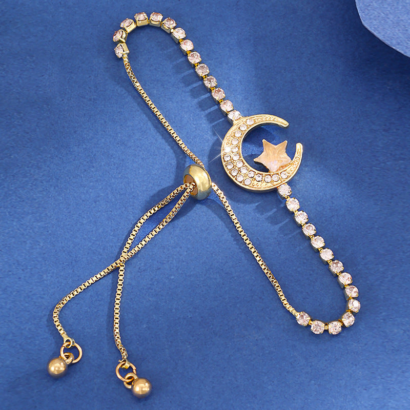 Diamond-embedded Star Moon Pull Bracelet Women's Fashion