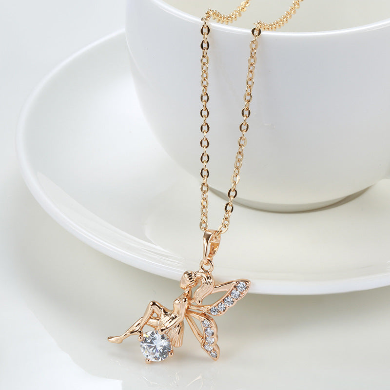 Women's Rose Gold Angel Pendant Zircon Necklace