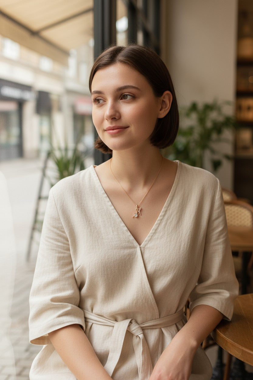 Rose gold fairy pendant necklace with sparkling accents — magical, luminous, and enchanting.
